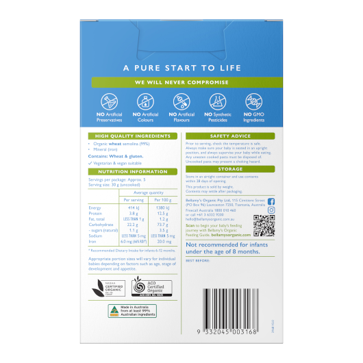 我们的有机婴儿配方奶粉1段与有机较大婴儿配方奶粉2段的新配方添加了DHA、ARA及GOS成分。 贝拉米有机婴儿配方奶粉1段营养全面并精心配制,含有多种从宝宝出生到六月龄期间生长发育所需的各种重要营养成分。